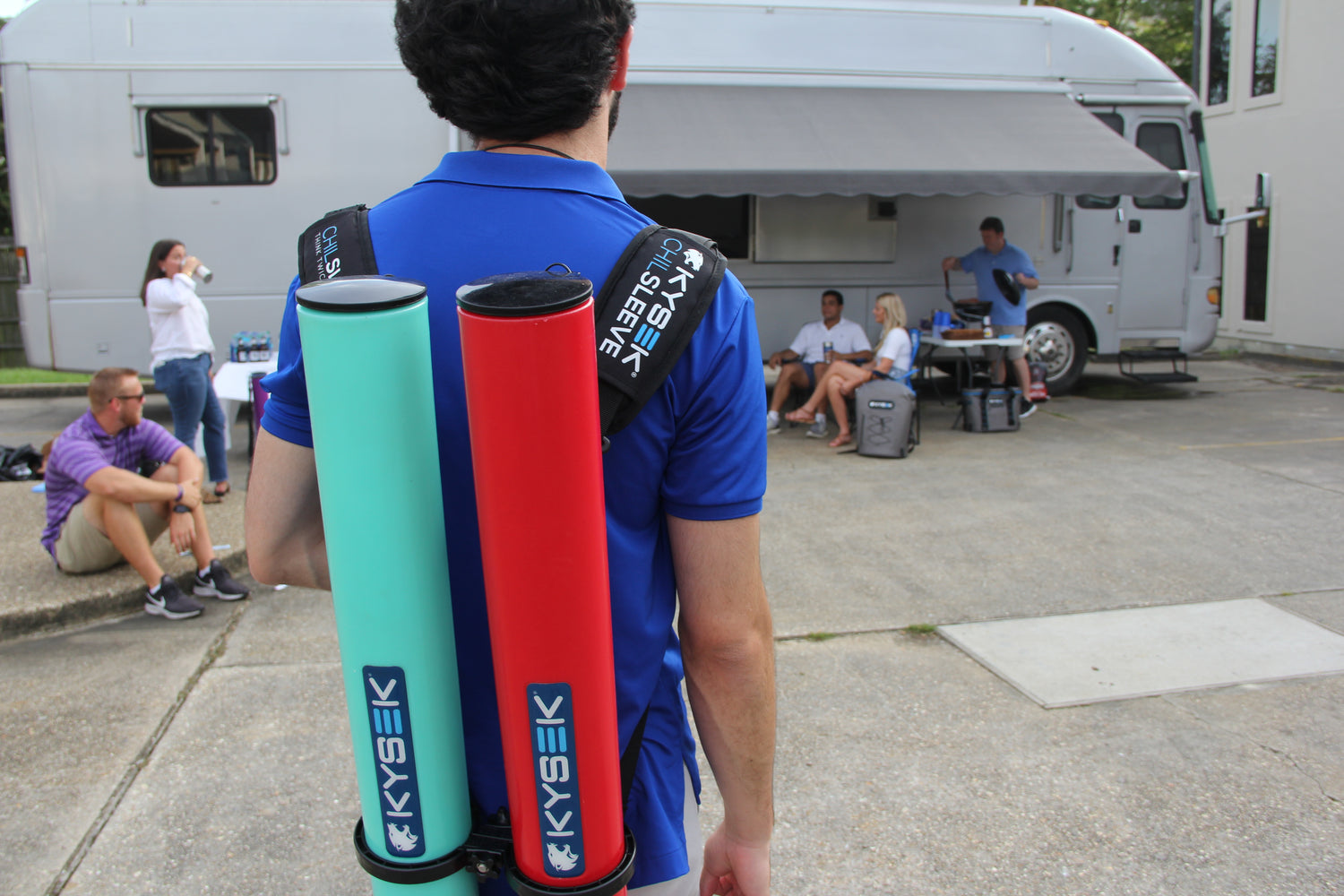 - Slide Double Barrel band from bottom over ChilSleeve with KYSEK letters facing upward. Repeat with second ChilSleeve.